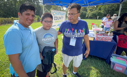 Party volunteers distributed nearly 320 pounds of school supplies to individual families in Siler City neighborhoods on August 26. More than 90 families benefitted from the giveaway. The materials included school essentials such as pencils, crayons, composition books, highlighters, glue sticks, scissors, backpacks, whiteboard markers, and paper. Chatham Democratic volunteers were on hand to distribute voter education and registration information to interested individuals.