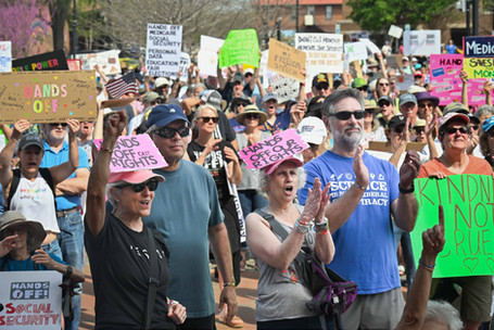Chatham County Democrats were among the approximately 1,000 people who gathered at the Chatham County Justice Center in downtown Pittsboro for the rally that protested the Trump administration’s attack on the services and institutions that are the cornerstones of the United States government. The Democrats gathered a few blocks away at the Democratic headquarters, before marching to the rally.