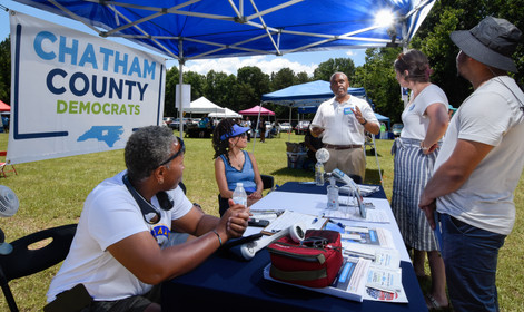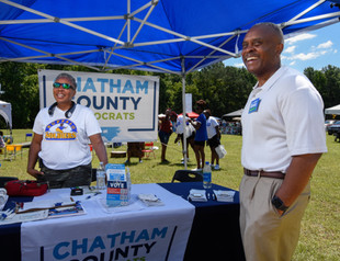 The Chatham County Democratic Party was one of many community sponsors of Pittsboro's Juneteenth celebration that was held on Saturday, June 18 at the Chatham County Fairgrounds. We had a tent and table where we saw many long-time friends and met many new friends during the celebration.