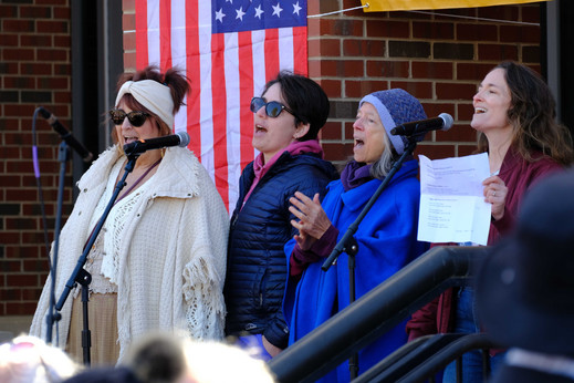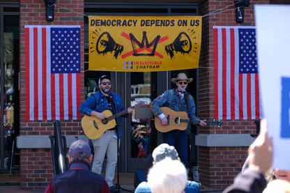 We also want to thank the musicians who added so much - Near Blind James and Harmonica Bob, and Singing Resistance Chatham. And also the many volunteers who kept our gathering safe, participated in the Signs of Fascism demonstration, and handed out flags and information. Chatham non-profits had tables with information to help strengthen and protect our community.