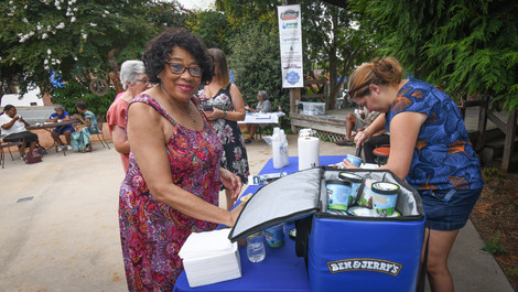 The West Chatham precincts (West and East Siler City, Albright, Hadley, and Hickory Mountain) hosted a meet-n-greet event on Sunday afternoon, August 14 where everyone had the opportunity to speak with candidates for the Chatham County Board of Education. The event was held at the Courtyard at the Arts Incubator in Siler City. Del Turner, Jane Allen Wilson, and Gary Leonard were all on hand to answer questions and listen to Chatham County citizens. The cooler temperature and lower humidity provided the perfect opportunity to get outside to meet some great people, have some free ice cream, and participate in a raffle for fully stocked book bags for students returning to school.